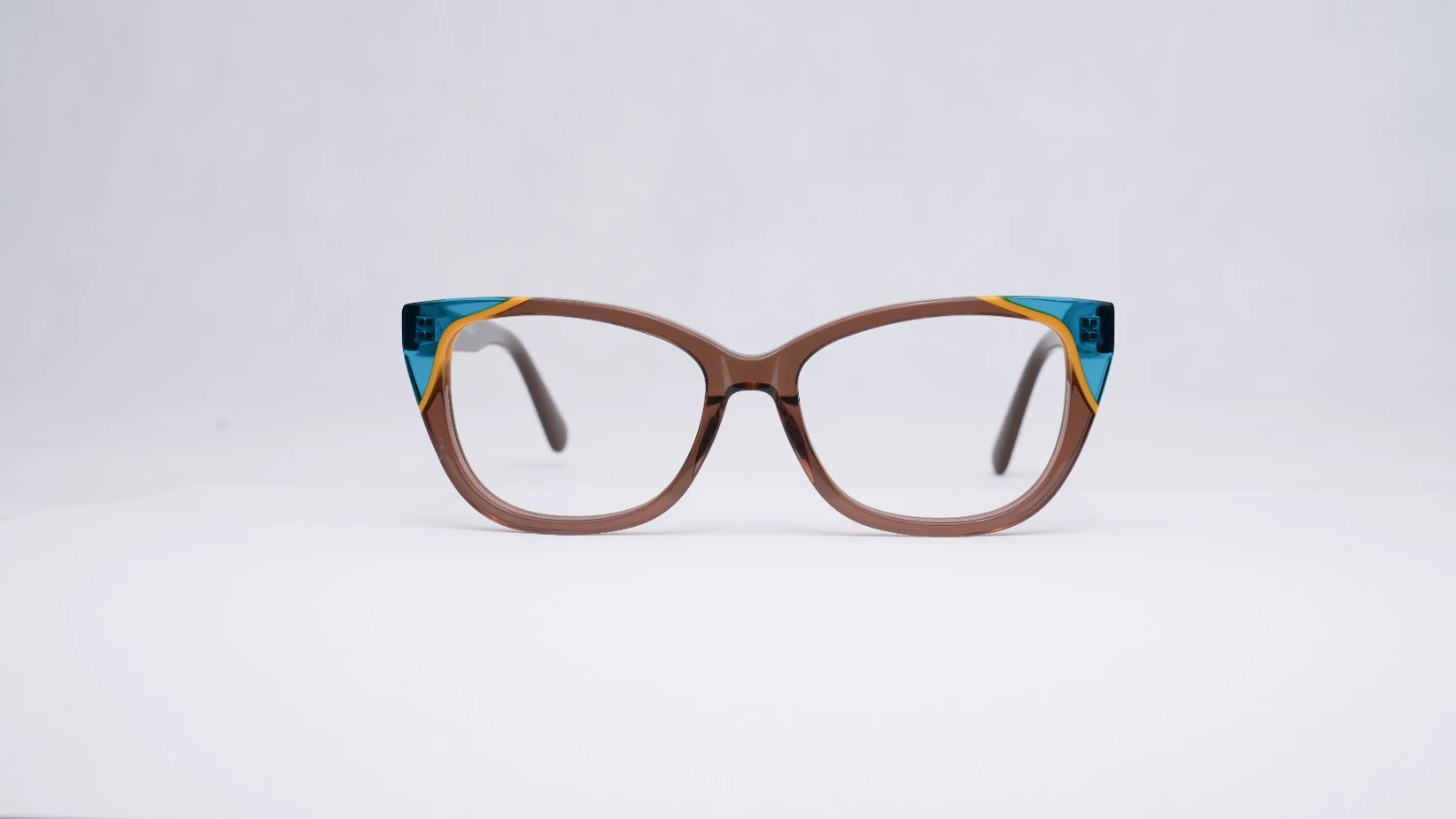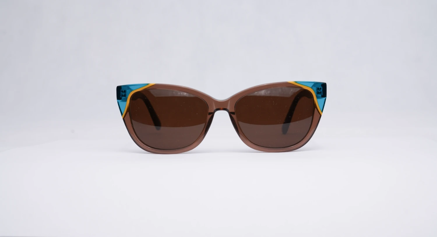 Oprawa okularowa reprezentująca wielokolorową kolekcję opraw okularowych i okularów przeciwsłonecznych marki Ghosteye Eyewear Radosława Wiktorowicza. Wielobarwność, przepiękna paleta barw i wyjątkowe kobiece formy to cechy rozpoznawcze marki. Prezentowany model to propozycja dla odważnych kobiet szukających efektownej i multikolorowej stylizacji. Połączenie turkusowego koloru, żółtego z dominującym brązem daje ciekawy kontrast, wygląda niepowtarzalnie i świetnie prezentuje się na żywo. Oprawa będzie dobrze komponować się z różnymi kształtami twarzy. Produkt wykonany jest z wysokiej jakości acetatu i wyprodukowany w wąskiej, limitowanej ilości. Do okularów dołączone etui i ściereczka z mikrofibry.