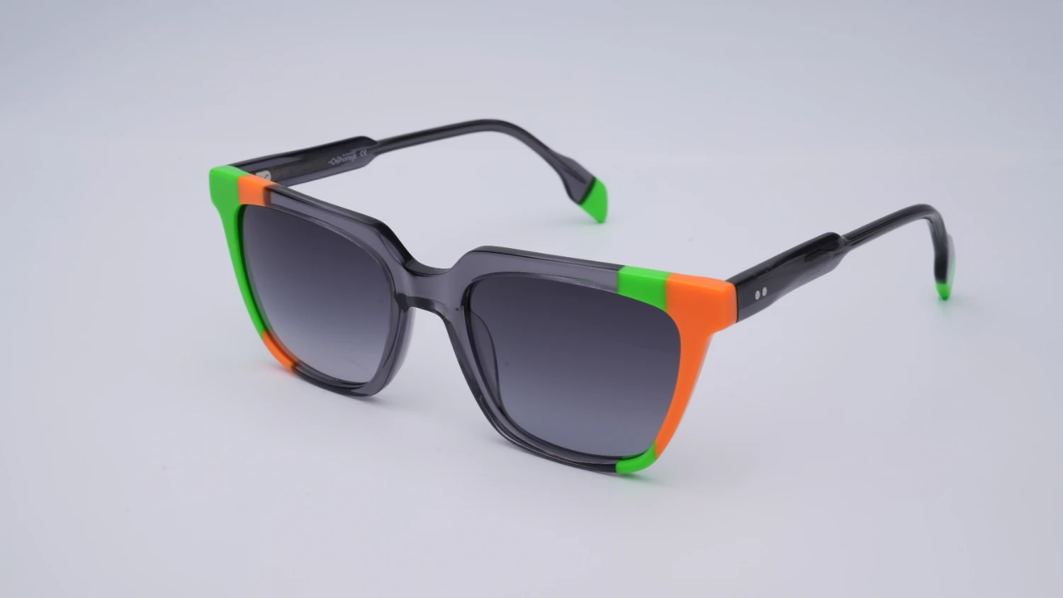 Oprawa okularowa reprezentująca wielokolorową kolekcję opraw okularowych i okularów przeciwsłonecznych marki Ghosteye Eyewear Radosława Wiktorowicza. Wielobarwność, przepiękna paleta barw i wyjątkowe kobiece formy to cechy rozpoznawcze marki. Prezentowany model to propozycja dla odważnych kobiet szukających efektownej, multikolorowej i radosnej stylizacji. Połączenie jaskrawego koloru limonkowego i pomarańczowego z lekko transparentnym grafitem świetnie prezentuje się na żywo. Oprawa będzie dobrze komponować się z różnymi kształtami twarzy. Produkt wykonany jest z wysokiej jakości acetatu i wyprodukowany w wąskiej, limitowanej ilości. Do okularów dołączone etui i ściereczka z mikrofibry.