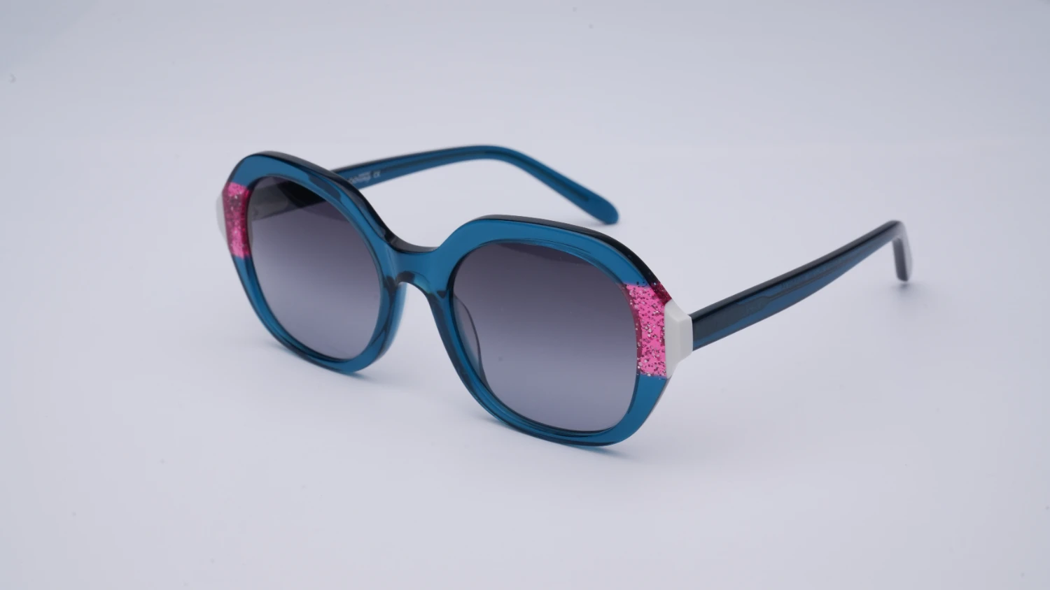 Oprawa okularowa reprezentująca wielokolorową kolekcję opraw okularowych i okularów przeciwsłonecznych marki Ghosteye Eyewear Radosława Wiktorowicza. Wielobarwność, przepiękna paleta barw i wyjątkowe kobiece formy to cechy rozpoznawcze marki. Prezentowany model to propozycja dla odważnych kobiet szukających efektownej stylizacji. Połączenie turkusowego koloru z mieniącym się różem oraz z bielą świetnie kontrastuje i prezentuje się na żywo. Oprawa będzie dobrze współgrać się z różnymi kształtami twarzy. Produkt wykonany jest z wysokiej jakości acetatu i wyprodukowany w wąskiej, limitowanej ilości. Do okularów dołączone etui i ściereczka z mikrofibry.