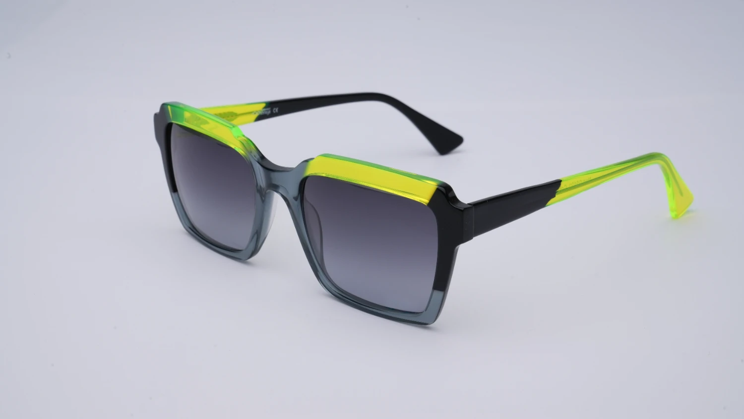 Oprawa okularowa reprezentująca wielokolorową kolekcję opraw okularowych i okularów przeciwsłonecznych marki Ghosteye Eyewear Radosława Wiktorowicza. Wielobarwność, przepiękna paleta barw i wyjątkowe kobiece formy to cechy rozpoznawcze marki. Prezentowany model to propozycja zarówno dla kobiet jak i dla mężczyzn poszukujących intrygujących zestawień kolorystycznych. Lekko transparenty grafit w połączeniu z limonkową zielenią tworzy ciekawy duet. To model dla osób szukających efektownej, radosnej i niecodziennej stylizacji. Oprawa będzie dobrze komponować się z różnymi kształtami twarzy. Produkt wykonany jest z wysokiej jakości acetatu i wyprodukowany w wąskiej, limitowanej ilości. Do okularów dołączone etui i ściereczka z mikrofibry.