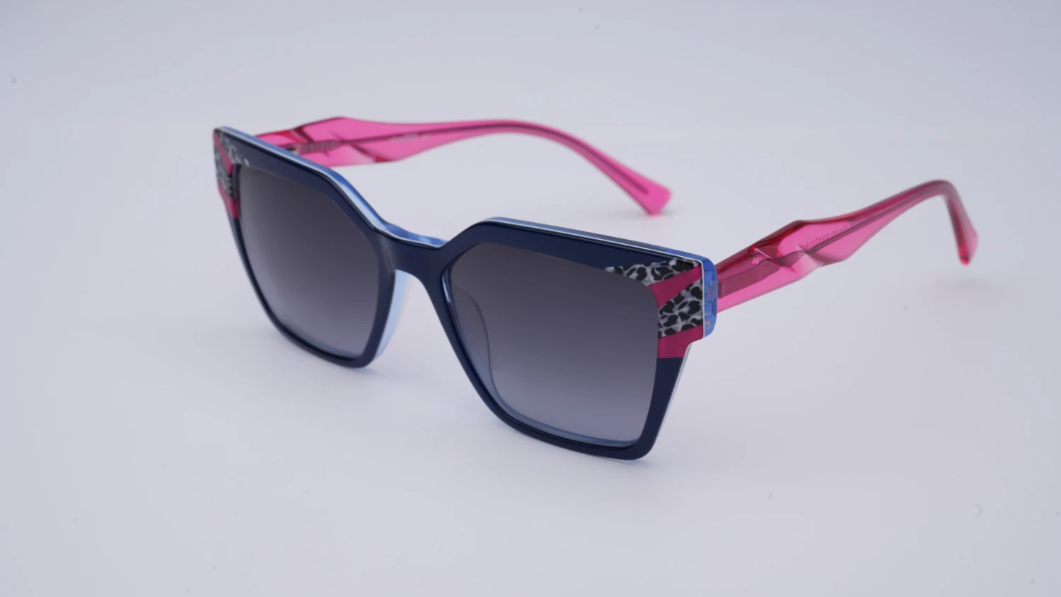 Oprawa okularowa reprezentująca wielokolorową kolekcję opraw okularowych i okularów przeciwsłonecznych marki Ghosteye Eyewear Radosława Wiktorowicza. Wielobarwność, przepiękna paleta barw i wyjątkowe kobiece formy to cechy rozpoznawcze marki. Prezentowany model to propozycja dla odważnych kobiet szukających efektownej, multikolorowej i radosnej stylizacji. Połączenie niebieskiej grafiki z różowym tworzy ciekawy kontrast, wygląda niepowtarzalnie i świetnie prezentuje się na żywo. Oprawa będzie dobrze komponować się z różnymi kształtami twarzy. Produkt wykonany jest z wysokiej jakości acetatu i wyprodukowany w wąskiej, limitowanej ilości. Do okularów dołączone etui i ściereczka z mikrofibry.