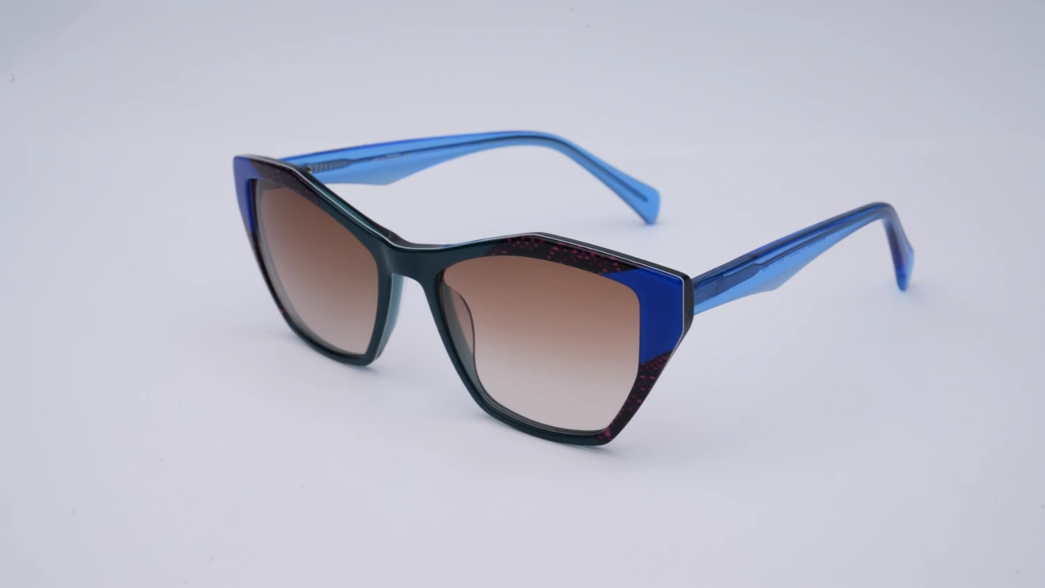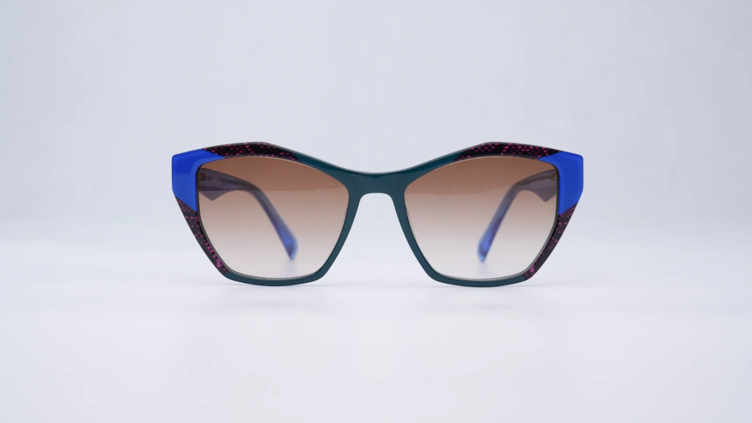 Oprawa okularowa reprezentująca wielokolorową kolekcję opraw okularowych i okularów przeciwsłonecznych marki Ghosteye Eyewear Radosława Wiktorowicza. Wielobarwność, przepiękna paleta barw i wyjątkowe kobiece formy to cechy rozpoznawcze marki. Prezentowany model to propozycja dla kobiet poszukujących intrygujących zestawień kolorystycznych. Ciemny niebieski, zieleń i wielokolorowa grafika robią niesamowite wrażenie. To model dla kobiet szukających efektownej, radosnej, ale i ponętnej stylizacji. Koci, ale też nieco wielokątny kształt dodaje sznytu i ekstrawagancji. Oprawa będzie dobrze komponować się z różnymi kształtami twarzy. Produkt wykonany jest z wysokiej jakości acetatu i wyprodukowany w wąskiej, limitowanej ilości. Do okularów dołączone etui i ściereczka z mikrofibry.
