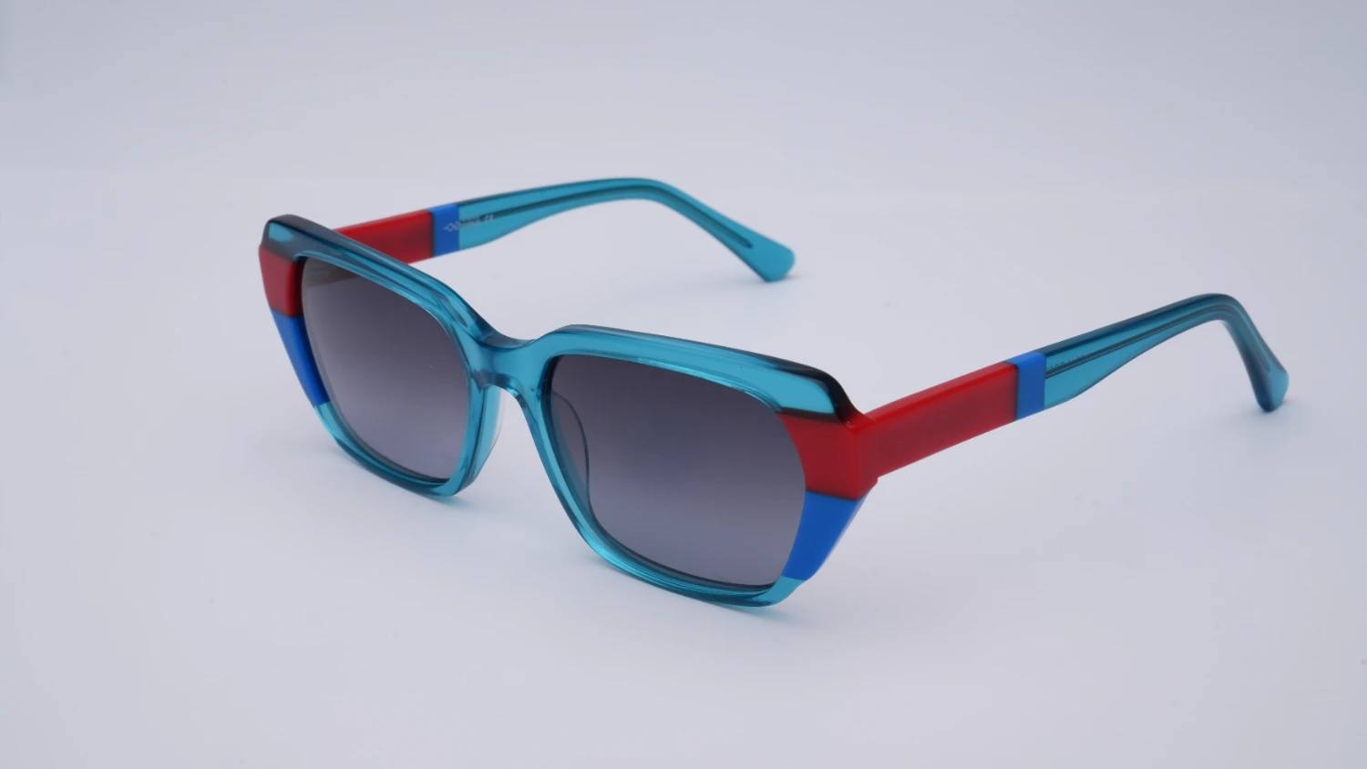 Oprawa okularowa reprezentująca wielokolorową kolekcję opraw okularowych i okularów przeciwsłonecznych marki Ghosteye Eyewear Radosława Wiktorowicza. Wielobarwność, przepiękna paleta barw i wyjątkowe kobiece formy to cechy rozpoznawcze marki. Prezentowany model to propozycja dla odważnych kobiet szukających efektownej, multikolorowej i radosnej stylizacji. Połączenie lekko transparentnego turkusu oraz intensywnego niebieskiego i czerwonego koloru wygląda niepowtarzalnie i świetnie prezentuje się na żywo. Oprawa będzie dobrze komponować się z różnymi kształtami twarzy. Produkt wykonany jest z wysokiej jakości acetatu i wyprodukowany w wąskiej, limitowanej ilości. Do okularów dołączone etui i ściereczka z mikrofibry.