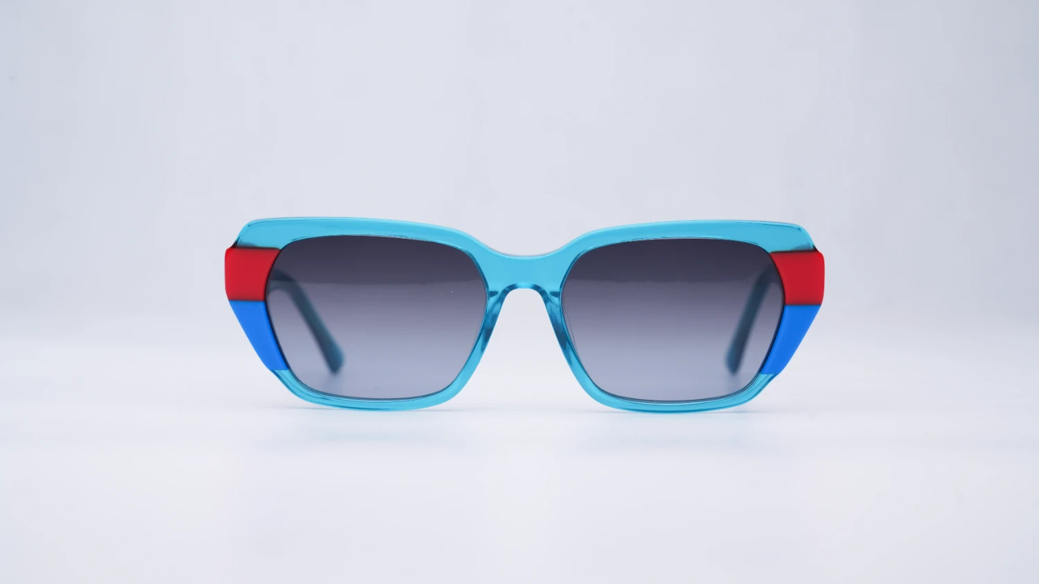 Oprawa okularowa reprezentująca wielokolorową kolekcję opraw okularowych i okularów przeciwsłonecznych marki Ghosteye Eyewear Radosława Wiktorowicza. Wielobarwność, przepiękna paleta barw i wyjątkowe kobiece formy to cechy rozpoznawcze marki. Prezentowany model to propozycja dla odważnych kobiet szukających efektownej, multikolorowej i radosnej stylizacji. Połączenie lekko transparentnego turkusu oraz intensywnego niebieskiego i czerwonego koloru wygląda niepowtarzalnie i świetnie prezentuje się na żywo. Oprawa będzie dobrze komponować się z różnymi kształtami twarzy. Produkt wykonany jest z wysokiej jakości acetatu i wyprodukowany w wąskiej, limitowanej ilości. Do okularów dołączone etui i ściereczka z mikrofibry.