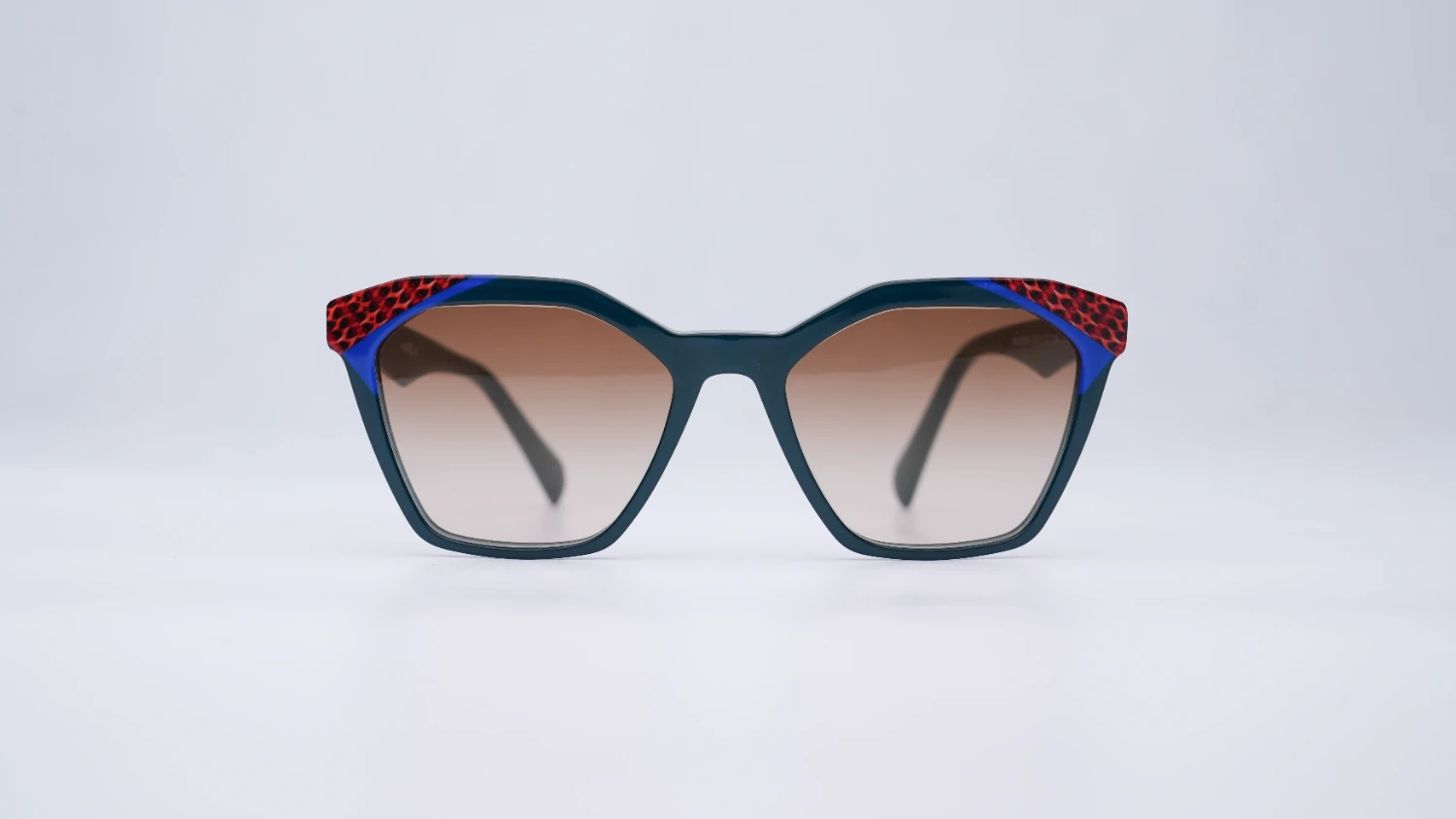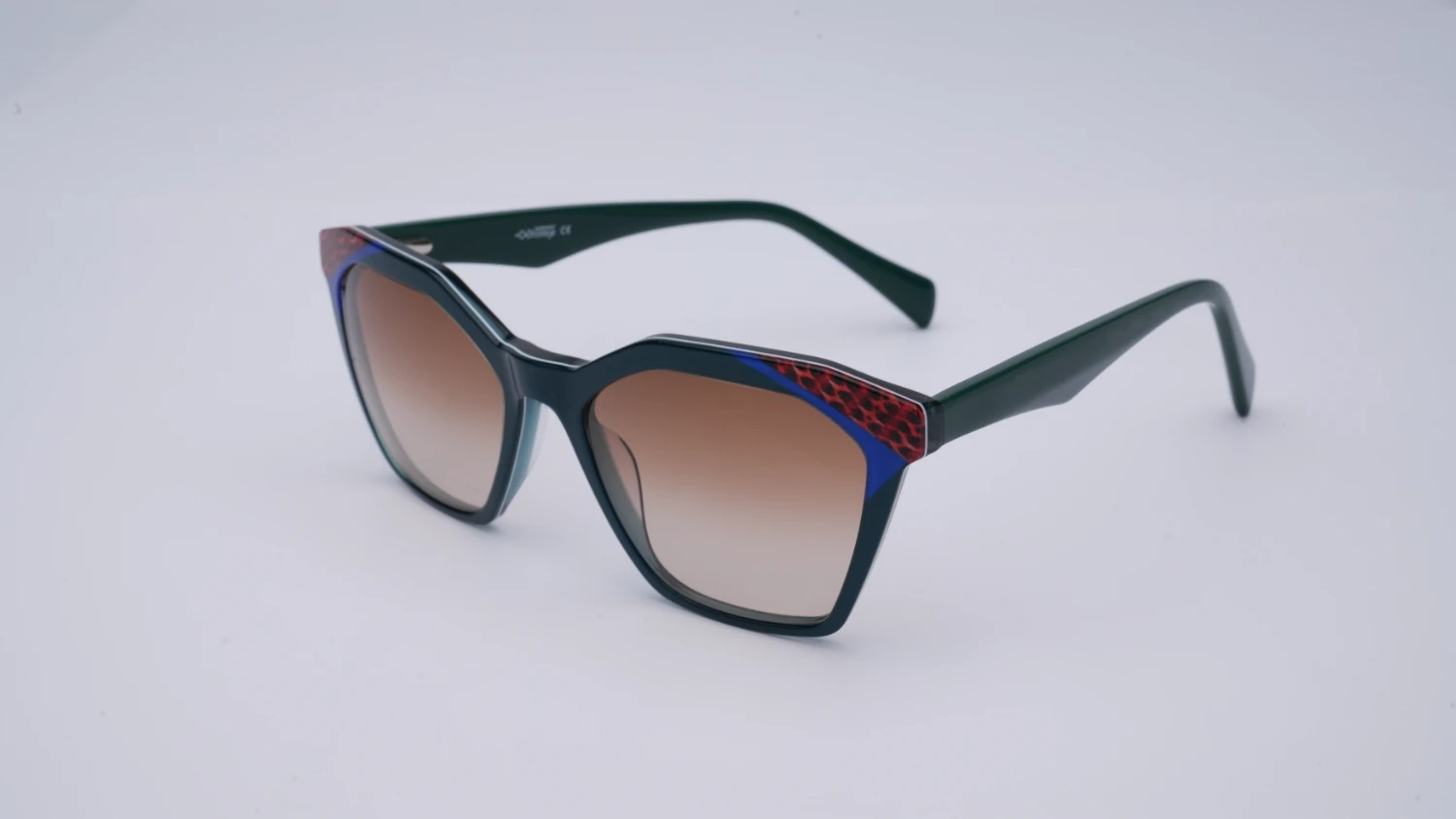 Oprawa okularowa reprezentująca wielokolorową kolekcję opraw okularowych i okularów przeciwsłonecznych marki Ghosteye Eyewear Radosława Wiktorowicza. Wielobarwność, przepiękna paleta barw i wyjątkowe kobiece formy to cechy rozpoznawcze marki. Prezentowany model to propozycja dla kobiet szukających dyskretnej, lecz ciekawej kolorystycznie stylizacji zbliżonych do kociego kształtu. Kolor zielony ciekawie łączy się z elementami niebieskiego i czerwonego w górnej krawędzi oprawy. Model będzie dobrze komponować się z różnymi kształtami twarzy. Produkt wykonany jest z wysokiej jakości acetatu i wyprodukowany w wąskiej, limitowanej ilości. Do okularów dołączone etui i ściereczka z mikrofibry.