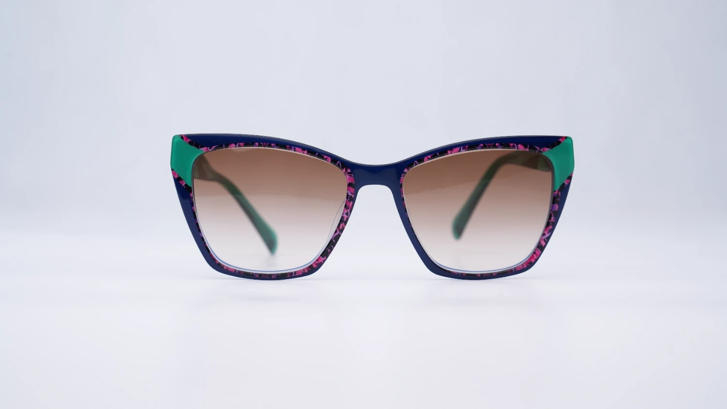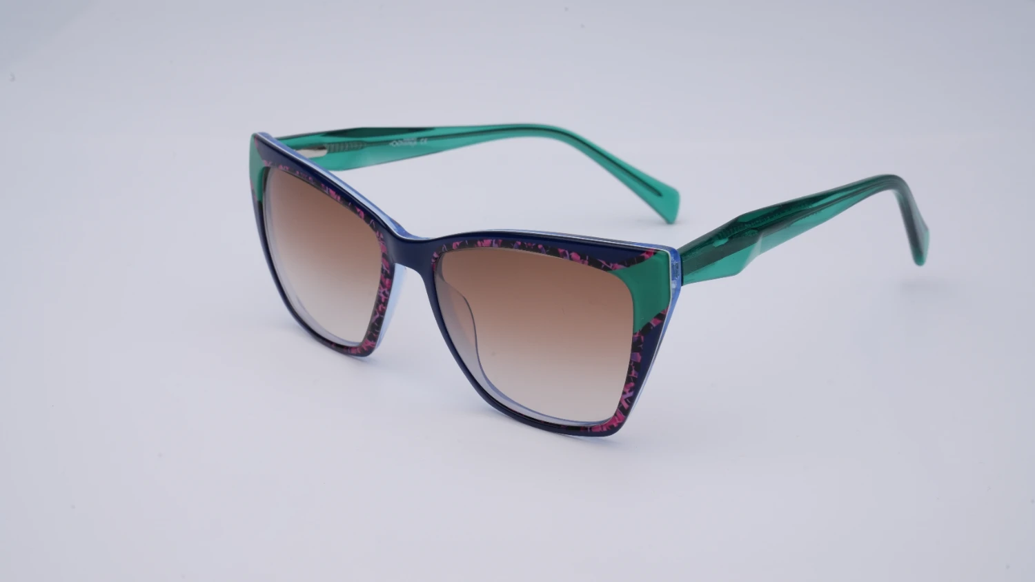 Oprawa okularowa reprezentująca wielokolorową kolekcję opraw okularowych i okularów przeciwsłonecznych marki Ghosteye Eyewear Radosława Wiktorowicza. Wielobarwność, przepiękna paleta barw i wyjątkowe kobiece formy to cechy rozpoznawcze marki. Prezentowany model to propozycja dla kobiet poszukujących intrygujących zestawień kolorystycznych. Ciemny niebieski, zieleń i wielokolorowa grafika robią niesamowite wrażenie. To model dla kobiet szukających efektownej, radosnej, ale i ponętnej stylizacji. Koci, ale też nieco wielokątny kształt dodaje sznytu i ekstrawagancji. Oprawa będzie dobrze komponować się z różnymi kształtami twarzy. Produkt wykonany jest z wysokiej jakości acetatu i wyprodukowany w wąskiej, limitowanej ilości. Do okularów dołączone etui i ściereczka z mikrofibry.